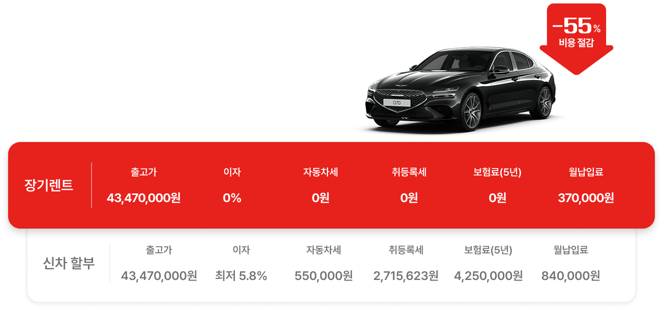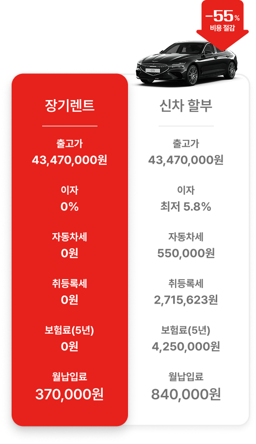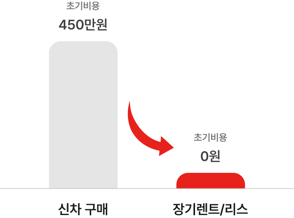 장기렌트 계약시 신차 구매 대비 어마어마한 비용이 절감돼요!
